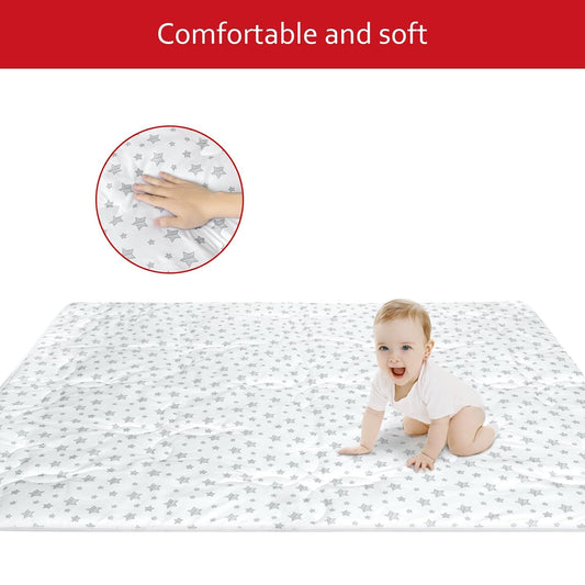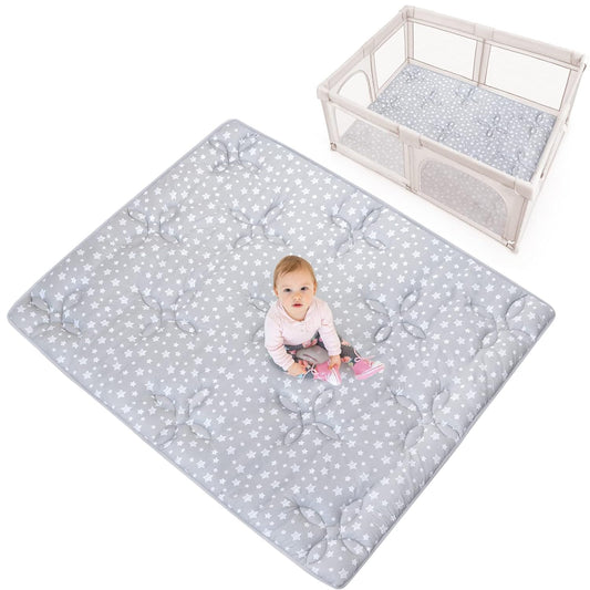 Baby Play Mat | Playpen Mat - 78.5" x 55", Large Padded Tummy Time Activity Mat for Infant & Toddler, Grey Star