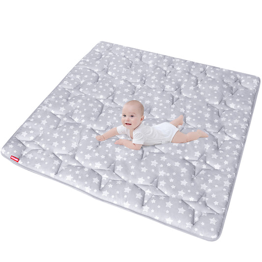 Baby Play Mat | Playpen Mat - 79" x 71", Large Padded Tummy Time Activity Mat for Infant & Toddler, Grey Star