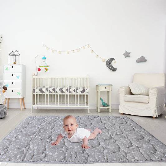 Baby Play Mat | Playpen Mat - 78.5" x 55", Large Padded Tummy Time Activity Mat for Infant & Toddler, Grey Star