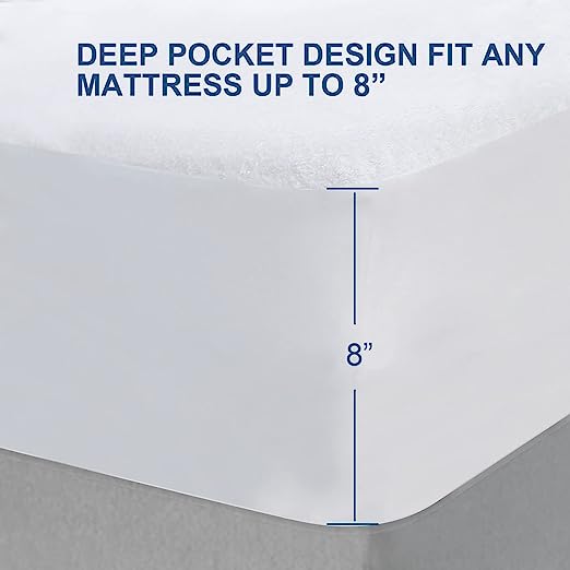 Crib Mattress Protector, Quilted Crib Mattress Pad Cover 52'' x 28'', Waterproof, Fitted Crib/Toddler Mattress Stretch Up to 8", White