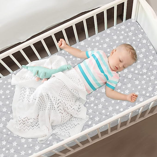 Crib Mattress Pad Protector, Waterproof, 52'' x 28'', Microfiber, Grey Star