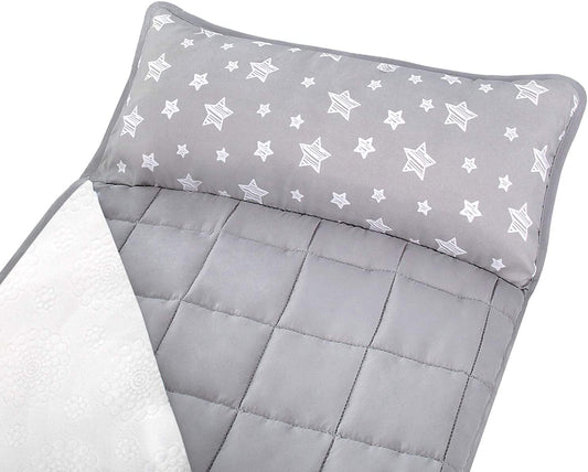 Toddler Nap Mat- Pillow And Fleece Minky Blanket, 21''x50'', Grey Star