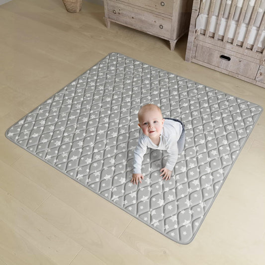 Baby Play Mat | Playpen Mat - 72" x 59", Large Padded Tummy Time Activity Mat for Infant & Toddler, Quilted with Four-Leaf Clover, Grey Star