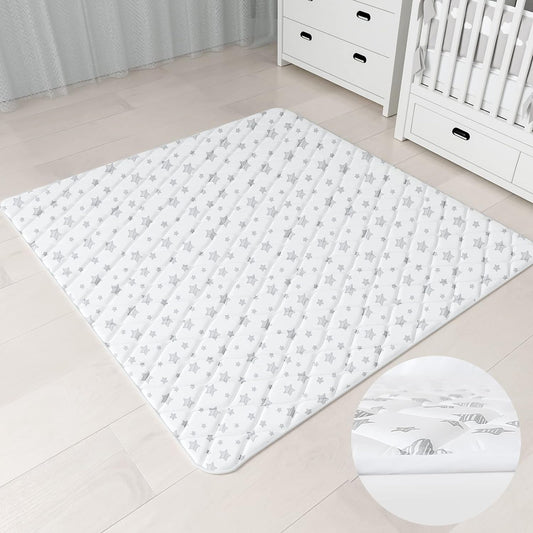 Baby Play Mat | Playpen Mat - 72" x 59", Large Padded Tummy Time Activity Mat for Infant & Toddler, Quilted with Four-Leaf Clover, White Star