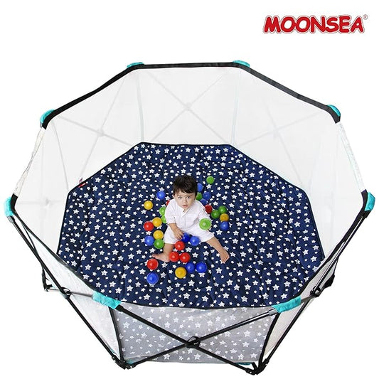 Baby Play Mat | Octagon Playpen Mat - 61" x 61", Padded and Non-Slip Activity Mat for Infant & Toddler, Navy Star