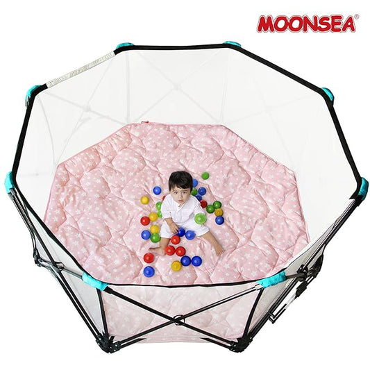 Baby Play Mat | Hexagon Playpen Mat - Compatible with POP 'N GO Baby Playpen, Pink Star
