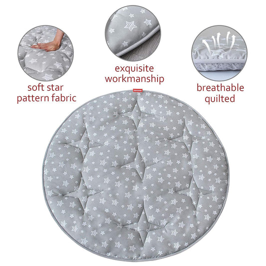 Baby Play Mat | Play Tent Mat - Round 40'' x 40'', Padded and Non-Slip Activity Mat for Kids and Toddlers, Grey Star