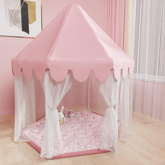 Baby Play Mat | Play Tent Mat - Hexagon 55" x 47", Fitted for Monobeach Princess Tent Large Playhouse Kids Castle Play Tent, Pink Star