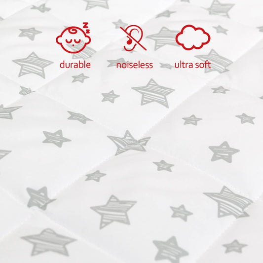 Pack n Play Sheet Quilted | Mini Crib Sheet - Pack and Play Mattress Pad Cover, Ultra-Soft Microfiber, Fits Graco Pack and Play, White Star