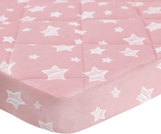 Pack n Play Sheet Quilted | Mini Crib Sheet - Pack and Play Mattress Pad Cover, Ultra-Soft Microfiber, Fits Graco Pack and Play, Pink Star