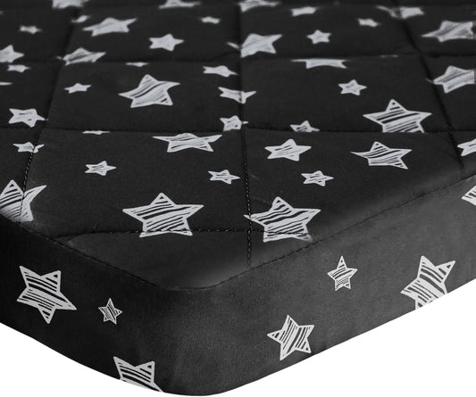 Pack n Play Sheet Quilted | Mini Crib Sheet - Pack and Play Mattress Pad Cover, Ultra-Soft Microfiber, Fits Graco Pack and Play, Black Star