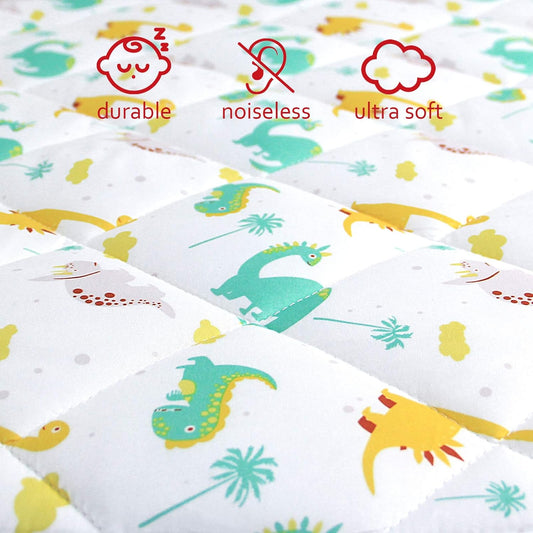 Pack n Play Sheet Quilted | Mini Crib Sheet - Pack and Play Mattress Pad Cover, Ultra-Soft Microfiber, Fits Graco Pack and Play, Dinosaur