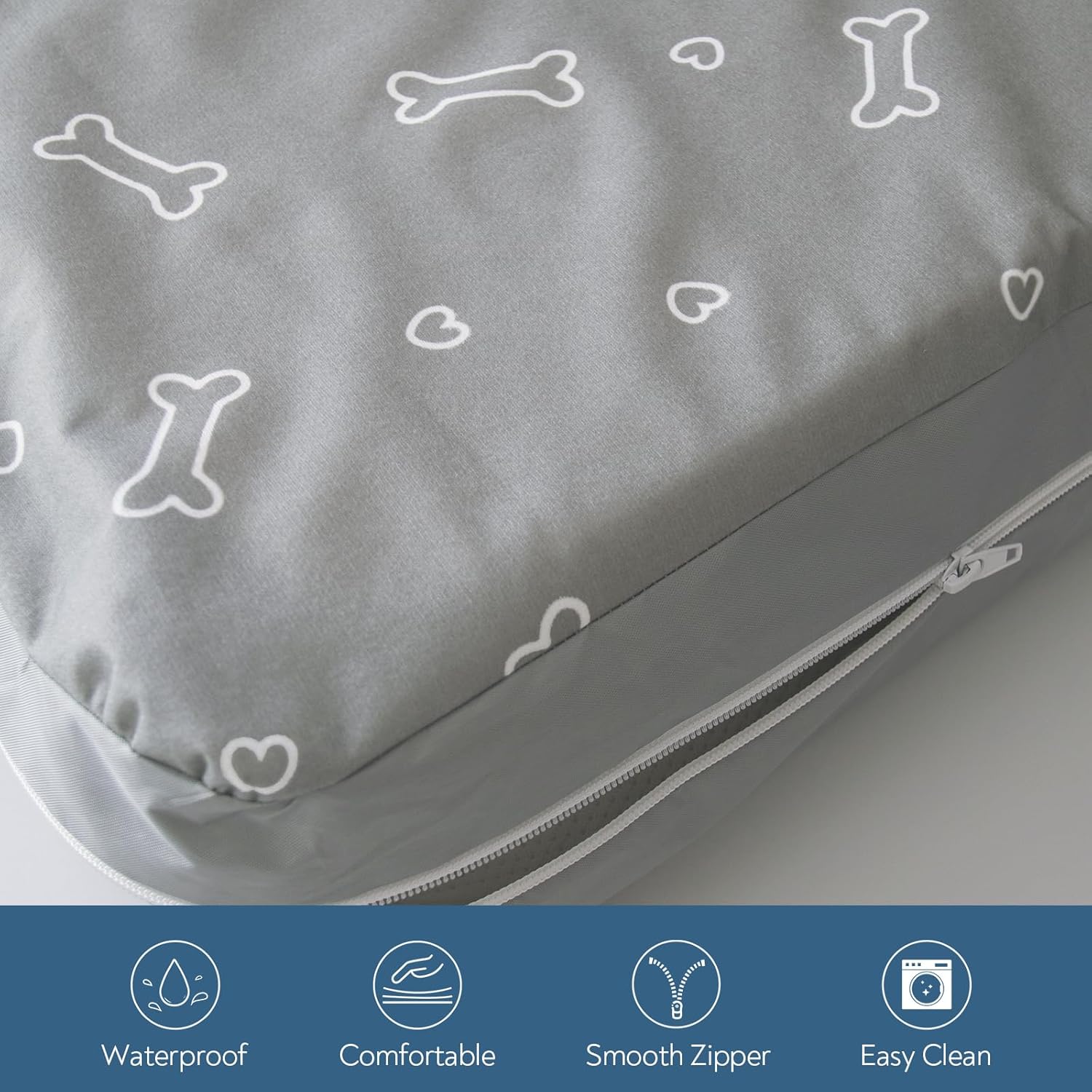 Dog Bed Cover with Zipper, Replacement Washable, Pet Bed Cover with Anti-Slip Bottom, Bone