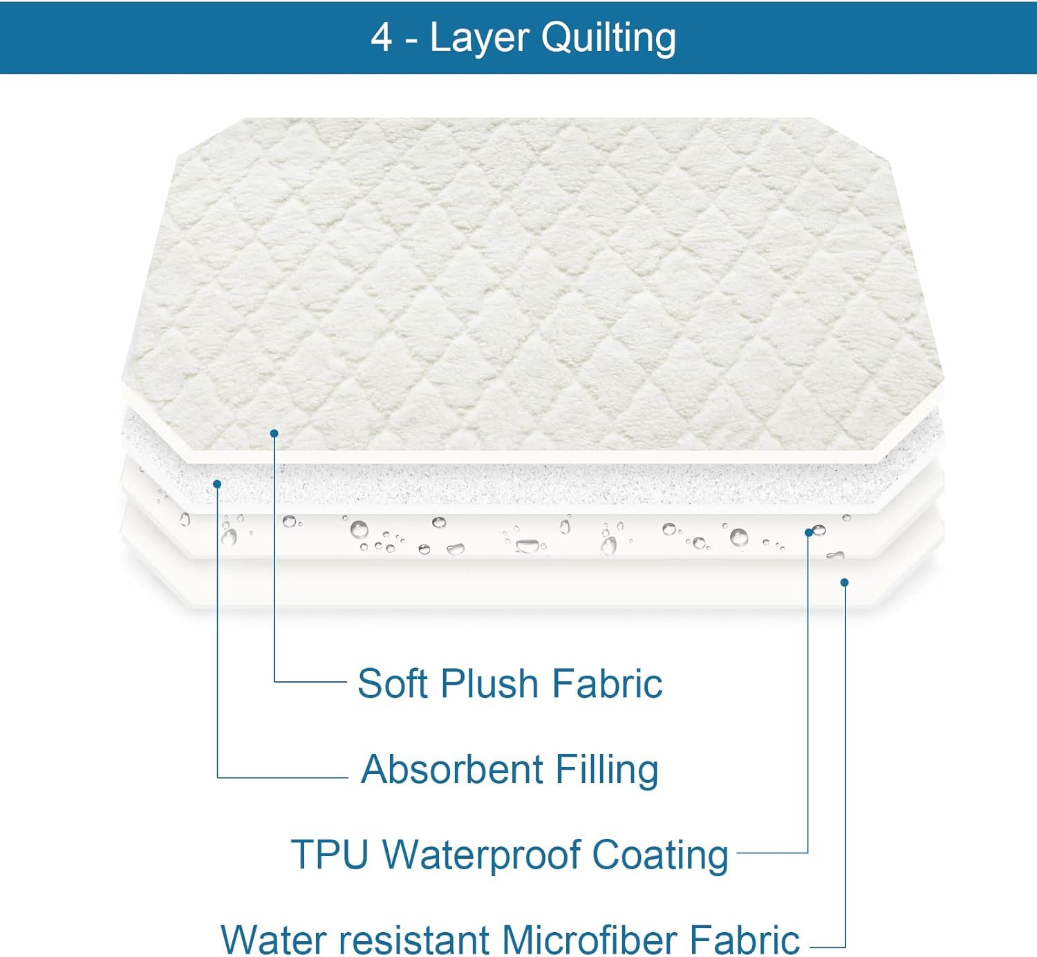 - 4 Layer for Protection: These dog mat are made of ultra soft plush surface; absorbent and breathable Filling; TPU 100% waterproof coating; water resistant microfiber fabric. Your puppy will be enjoying the soft and comfortable feeling when sleeps or plays. Also it will be your dog/cat protection to avoid accidents, liquids or stains.