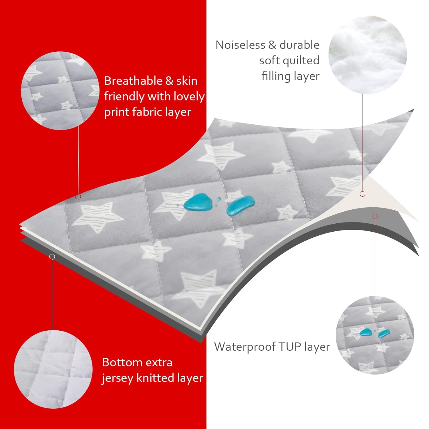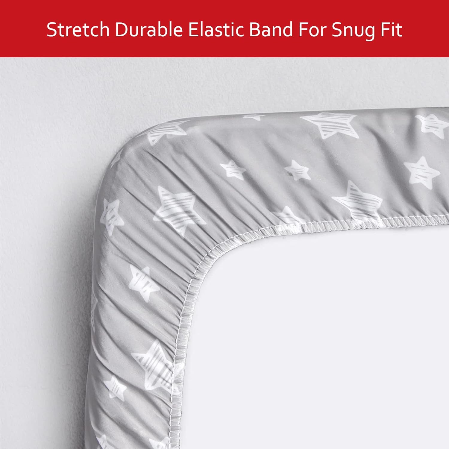 Pack n Play Sheet Quilted | Mini Crib Sheet - 2 Pack, Pack and Play Mattress Pad Cover, Ultra-Soft Microfiber,Waterproof, Fits Graco Pack and Play, Grey and White Star