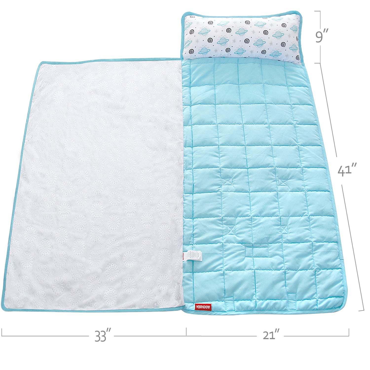 - With convenient fastening closures and a carrying handle, this kids' nap mat can be easily rolled up for travel. Your little one can take it to school, sleepovers, and more with ease.